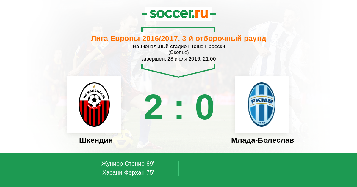 Протокол матча Шкендия против Млада-Болеслав