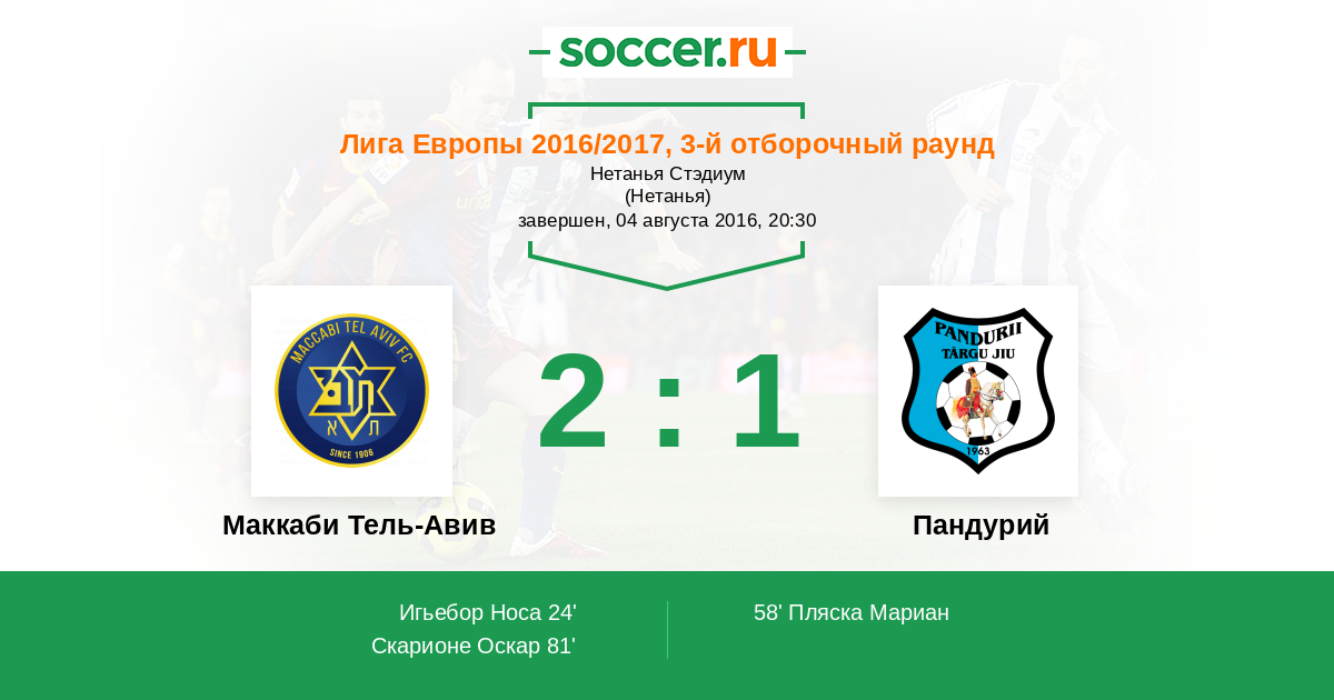 Протокол матча Маккаби Тель-Авив против Пандурий