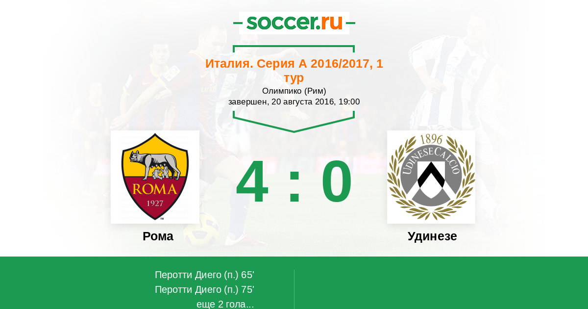 Протокол матча Рома против Удинезе