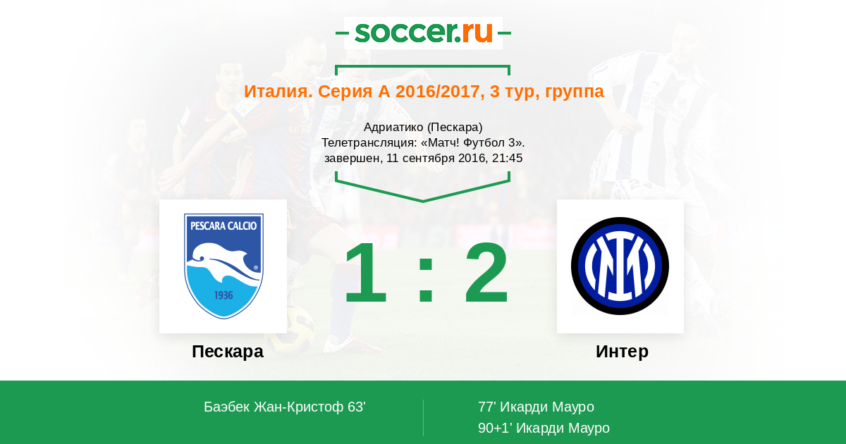 Протокол матча Пескара против Интер