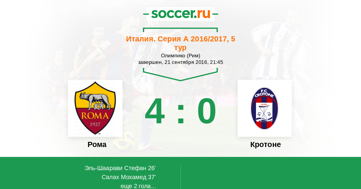 26' (1:0) Эль-Шаарави Стефан (92) (Флоренци Алессандро (24))