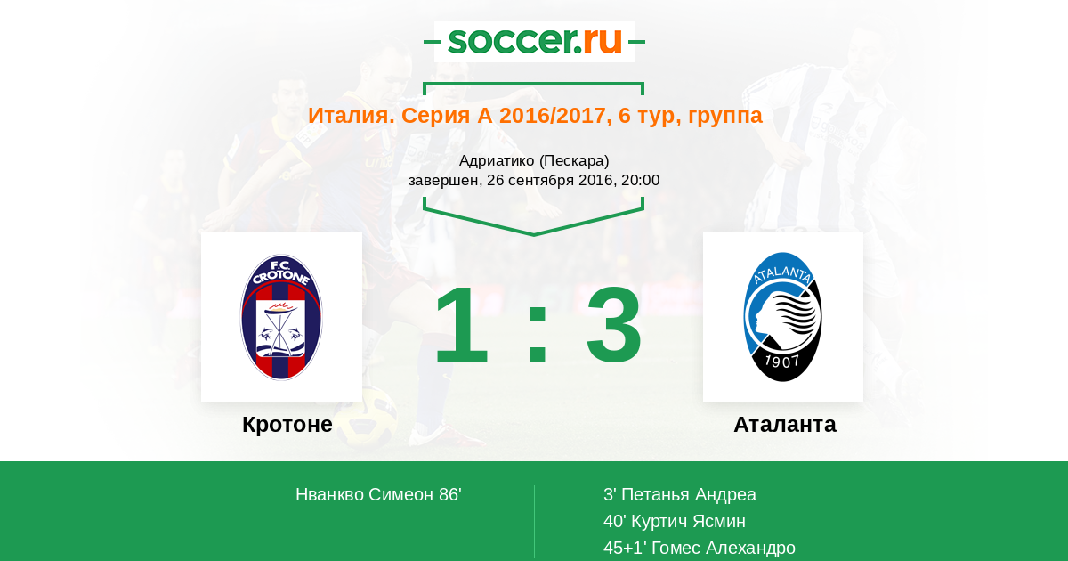 3' (0:1) Петанья Андреа (29) (Масиелло Андреа (5))