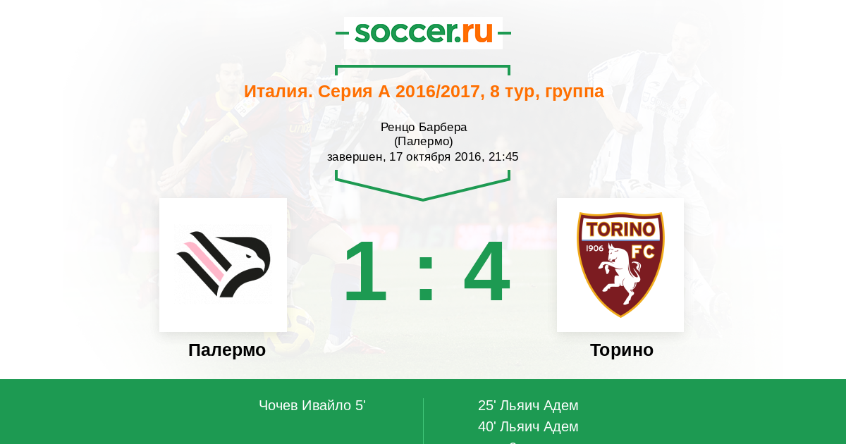 Протокол матча Палермо против Торино
