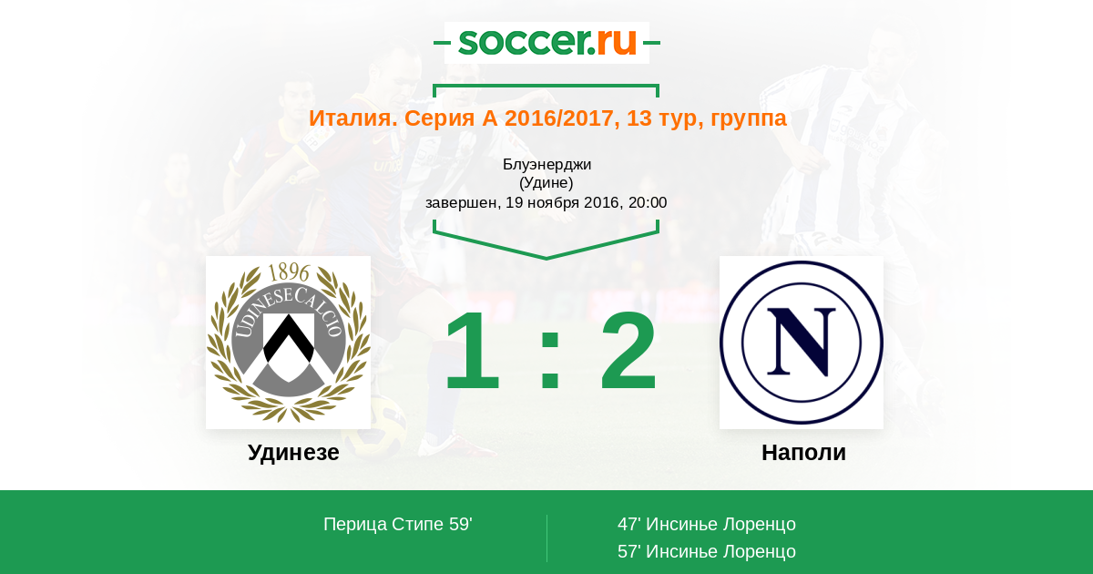 Протокол матча Удинезе против Наполи