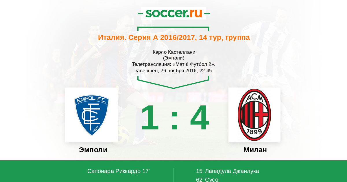 Протокол матча Эмполи против Милан