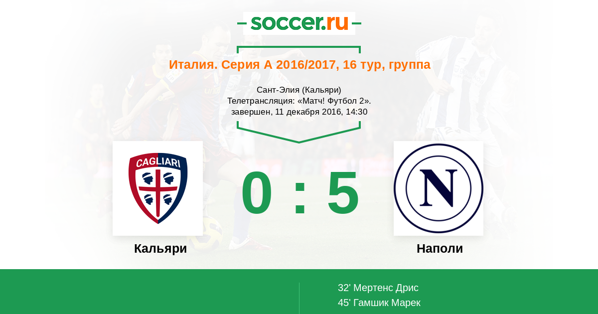 73' (0:5) Мертенс Дрис (14) (Гамшик Марек (17))