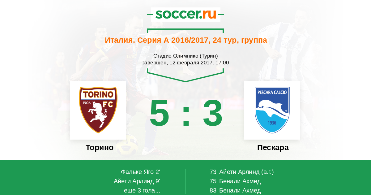 Протокол матча Торино против Пескара