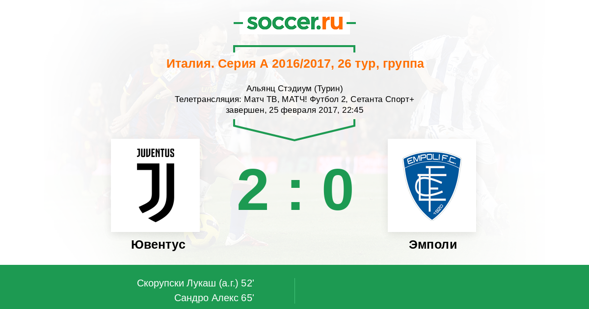 Протокол матча Ювентус против Эмполи