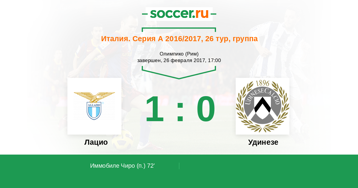 Протокол матча Лацио против Удинезе
