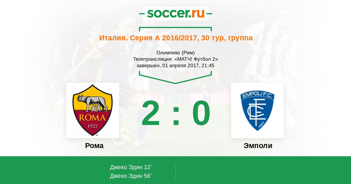Протокол матча Рома против Эмполи