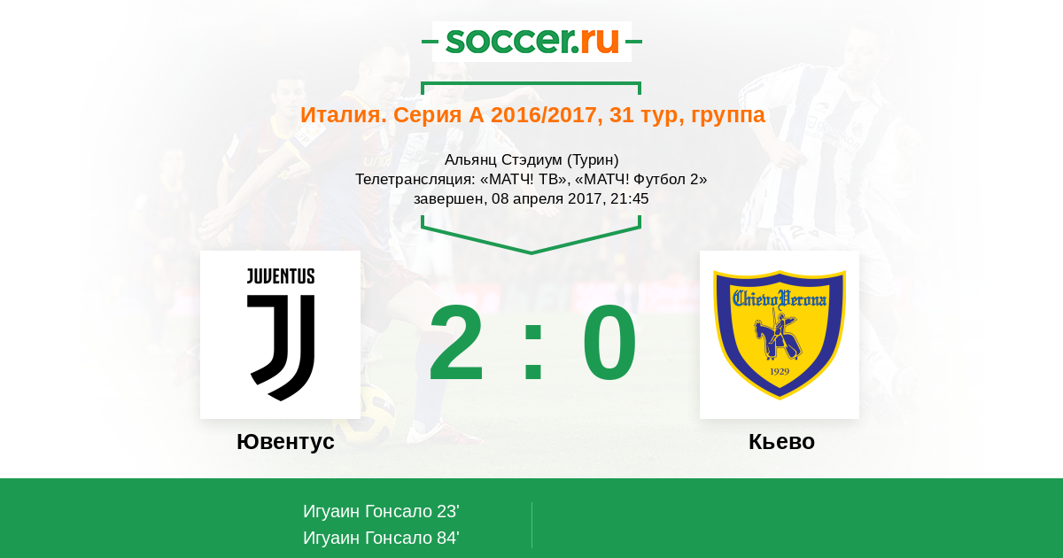Протокол матча Ювентус против Кьево