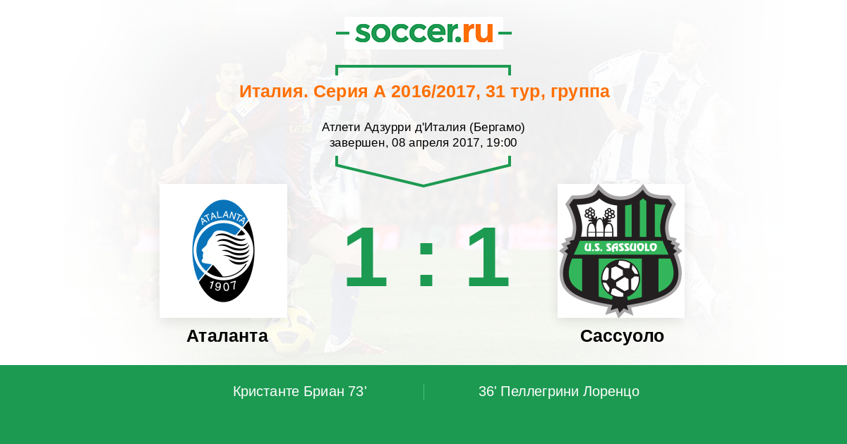 73' (1:1) Кристанте Бриан (4) (Гомес Алехандро (10))