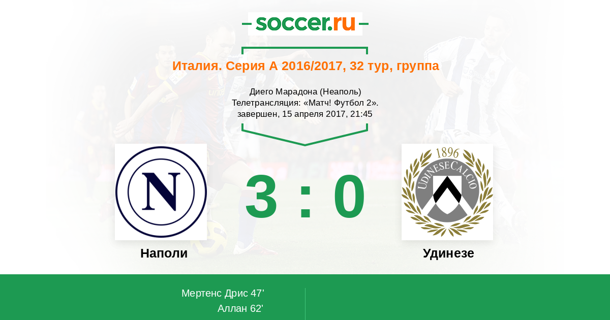 Протокол матча Наполи против Удинезе