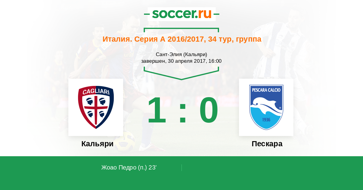 Протокол матча Кальяри против Пескара