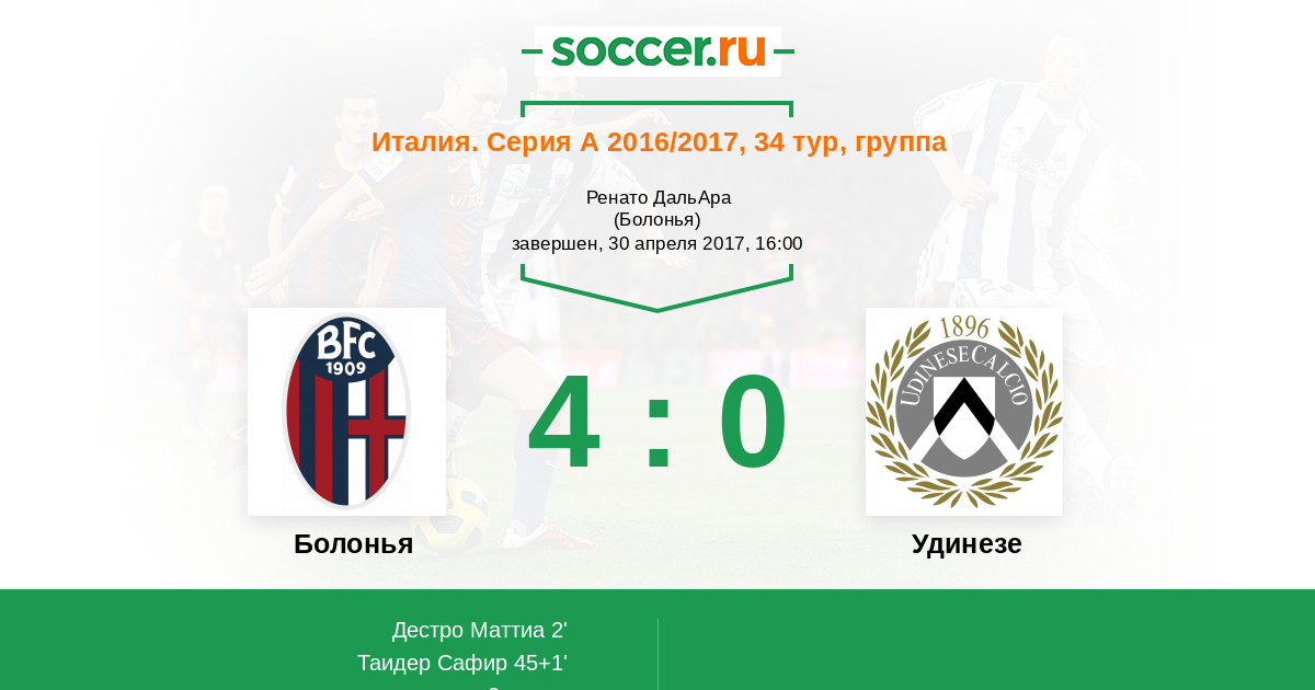 Протокол матча Болонья против Удинезе