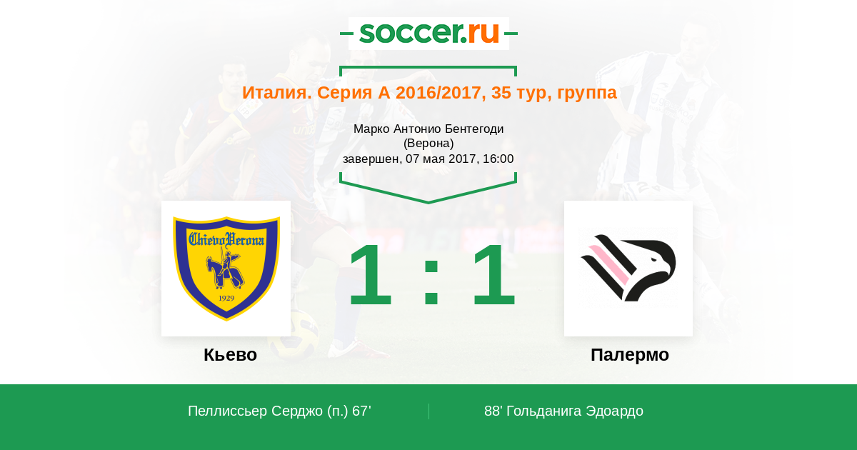 Протокол матча Кьево против Палермо