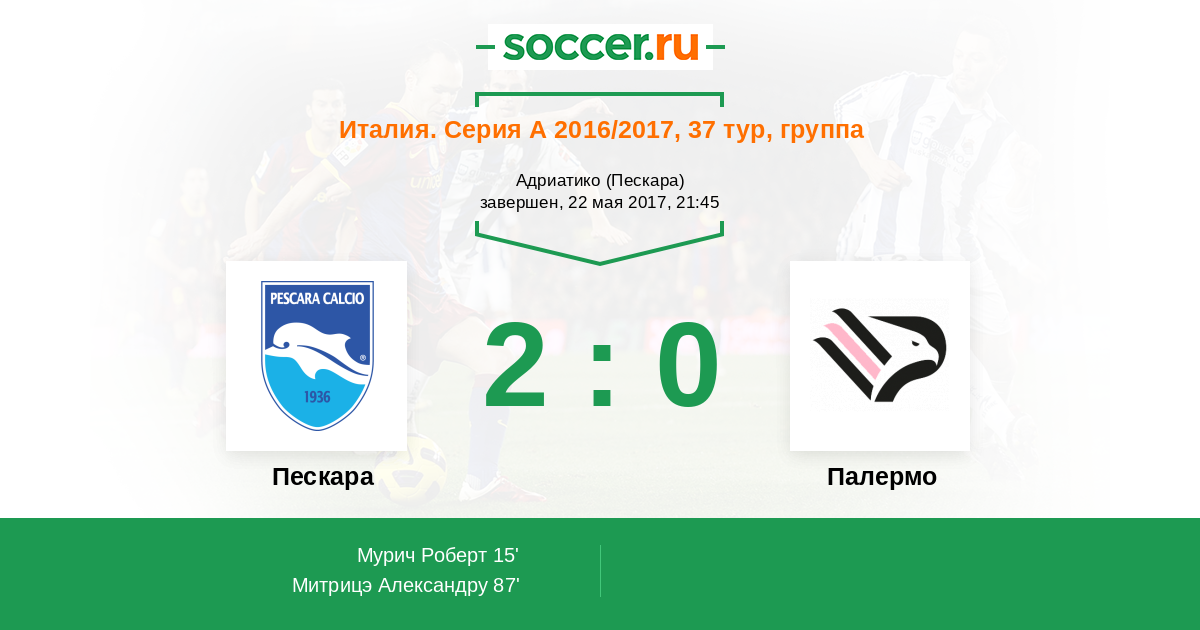 Протокол матча Пескара против Палермо