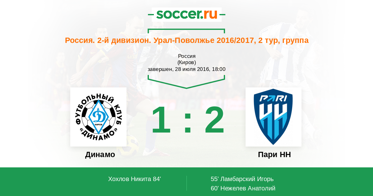 Протокол матча Динамо Киров против Пари НН