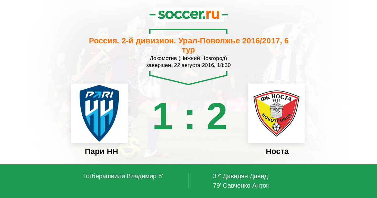Протокол матча Пари НН против Носта