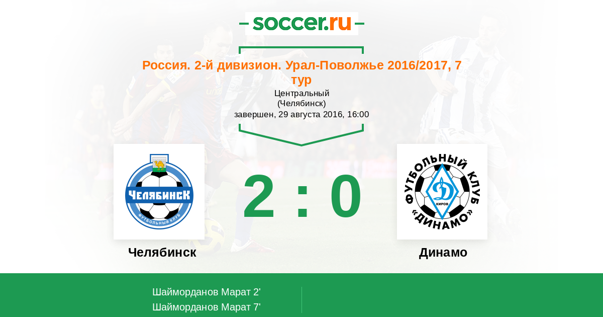 Протокол матча Челябинск против Динамо Киров