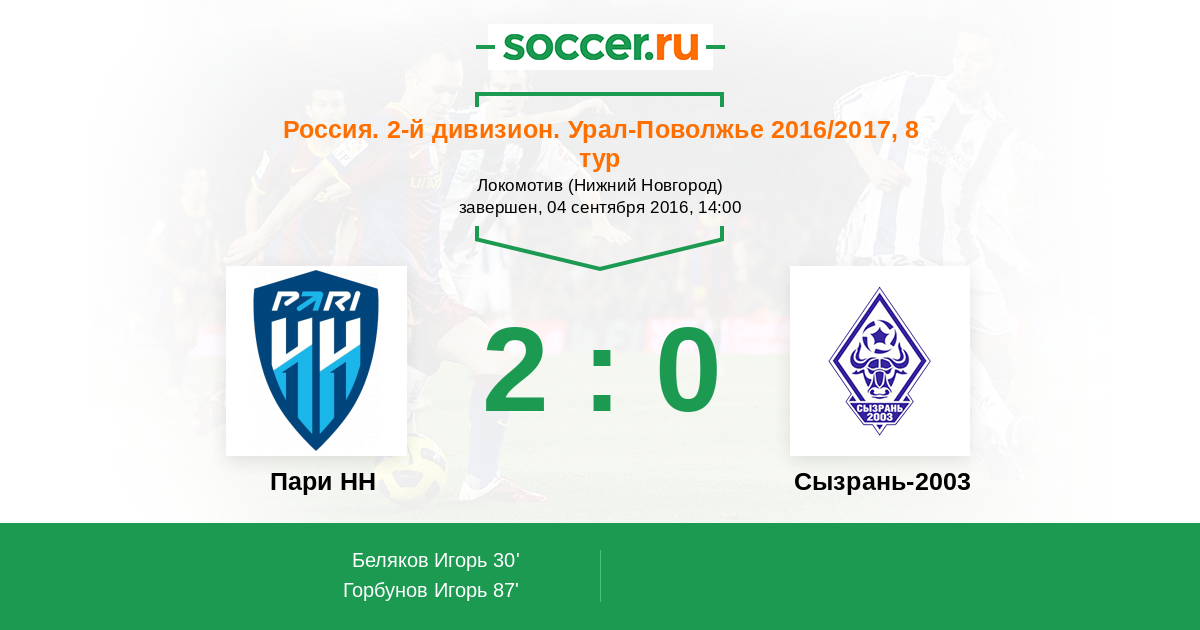 Протокол матча Пари НН против Сызрань-2003