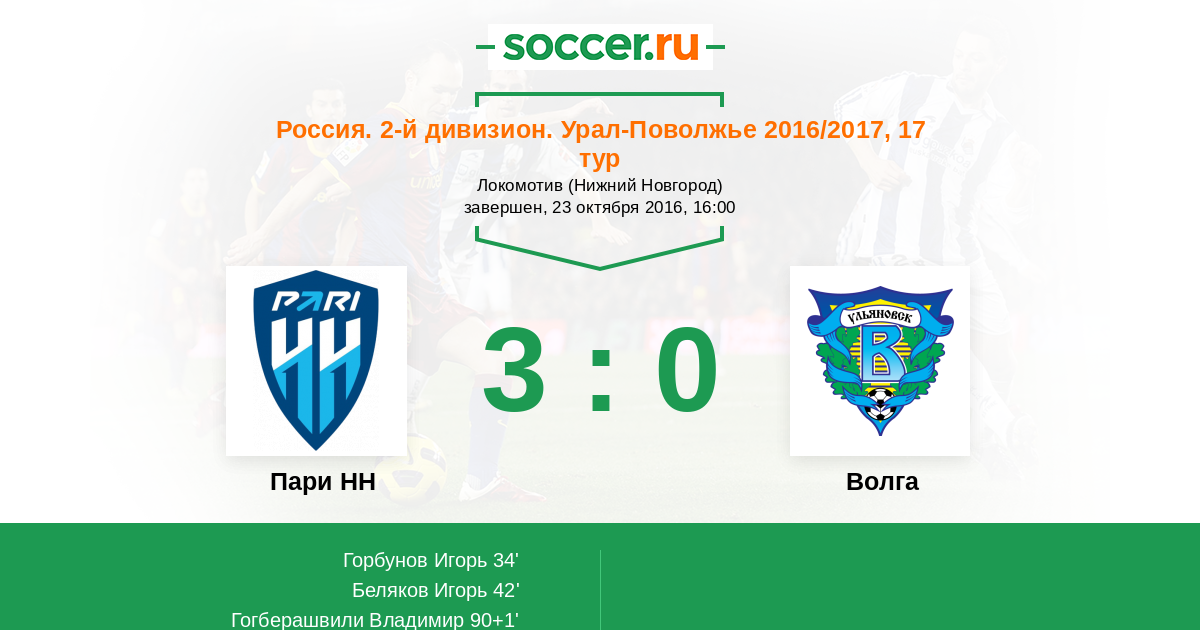 Протокол матча Пари НН против Волга