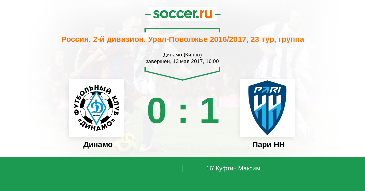 Протокол матча Динамо Киров против Пари НН