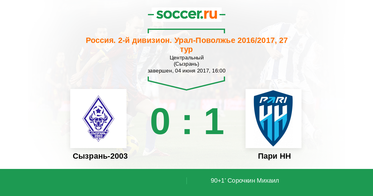 Протокол матча Сызрань-2003 против Пари НН