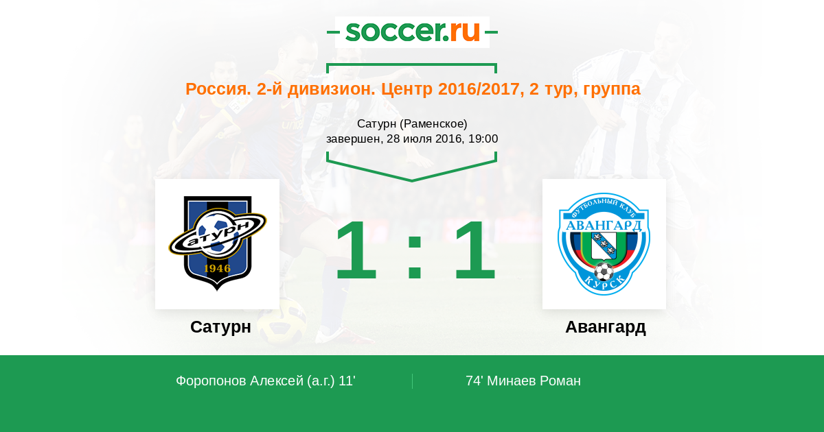 Протокол матча Сатурн против Авангард