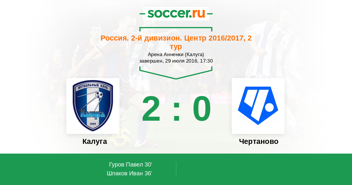 Протокол матча Калуга против Чертаново