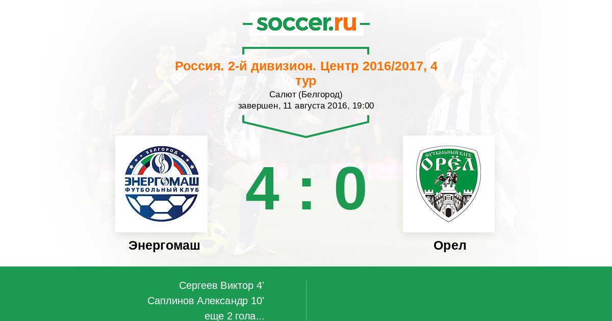 Протокол матча Энергомаш против Орел