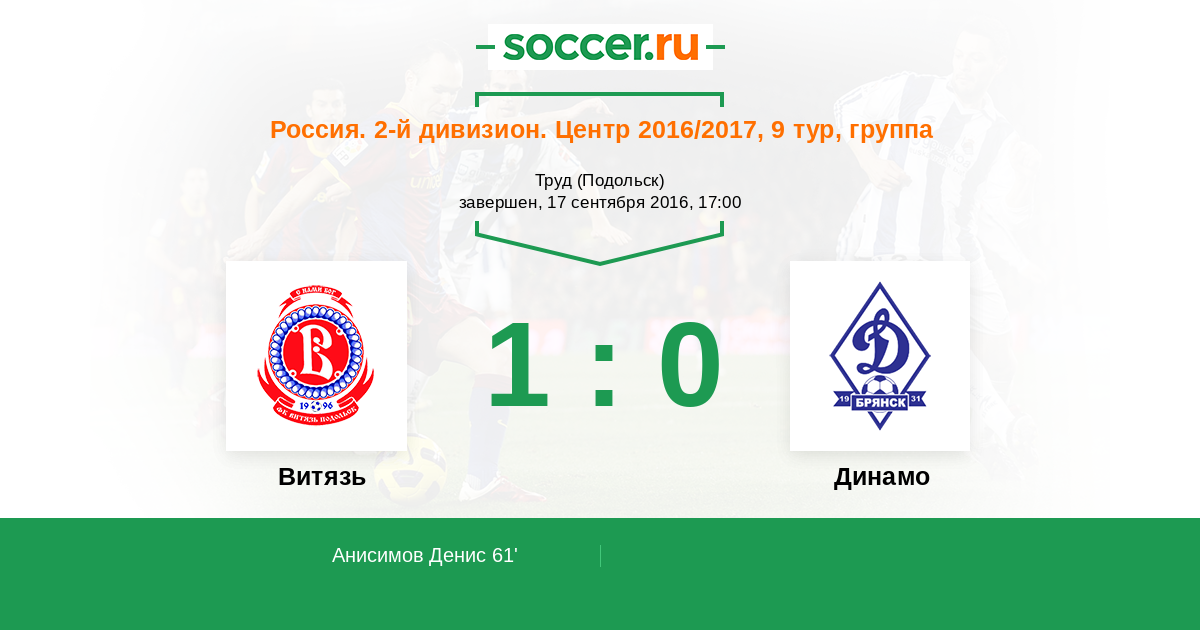 Протокол матча Витязь против Динамо Брянск
