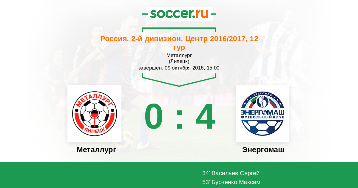 Протокол матча Металлург против Энергомаш