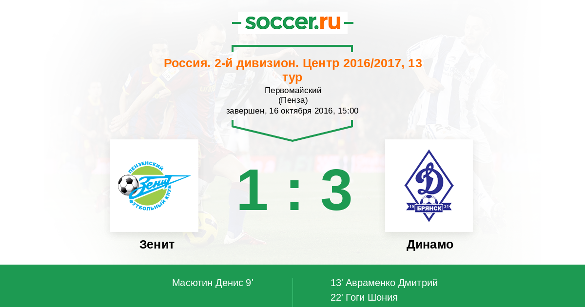 Протокол матча Зенит против Динамо Брянск