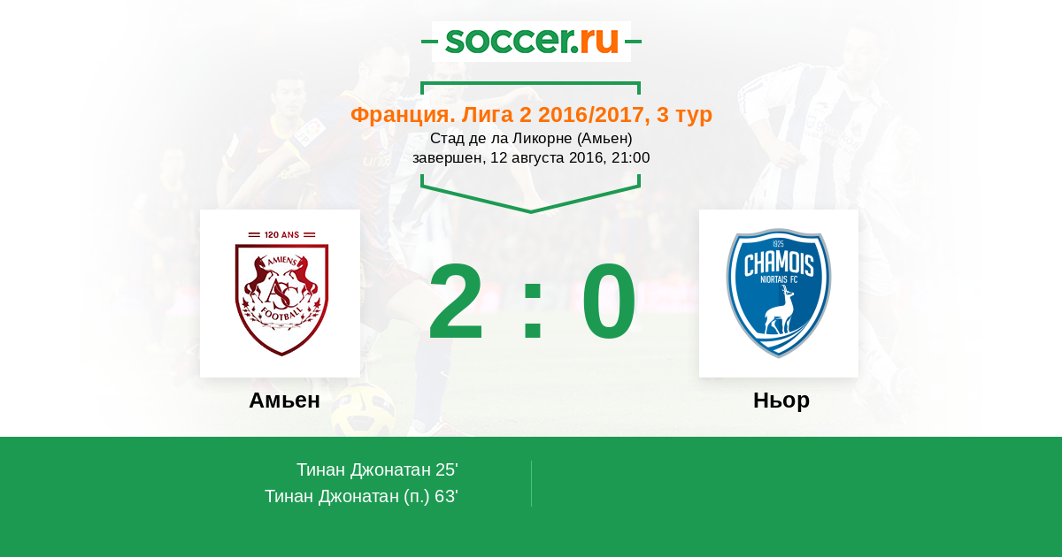 Протокол матча Амьен против Ньор