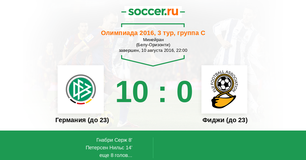 Протокол матча Германия (до 23) против Фиджи (до 23)