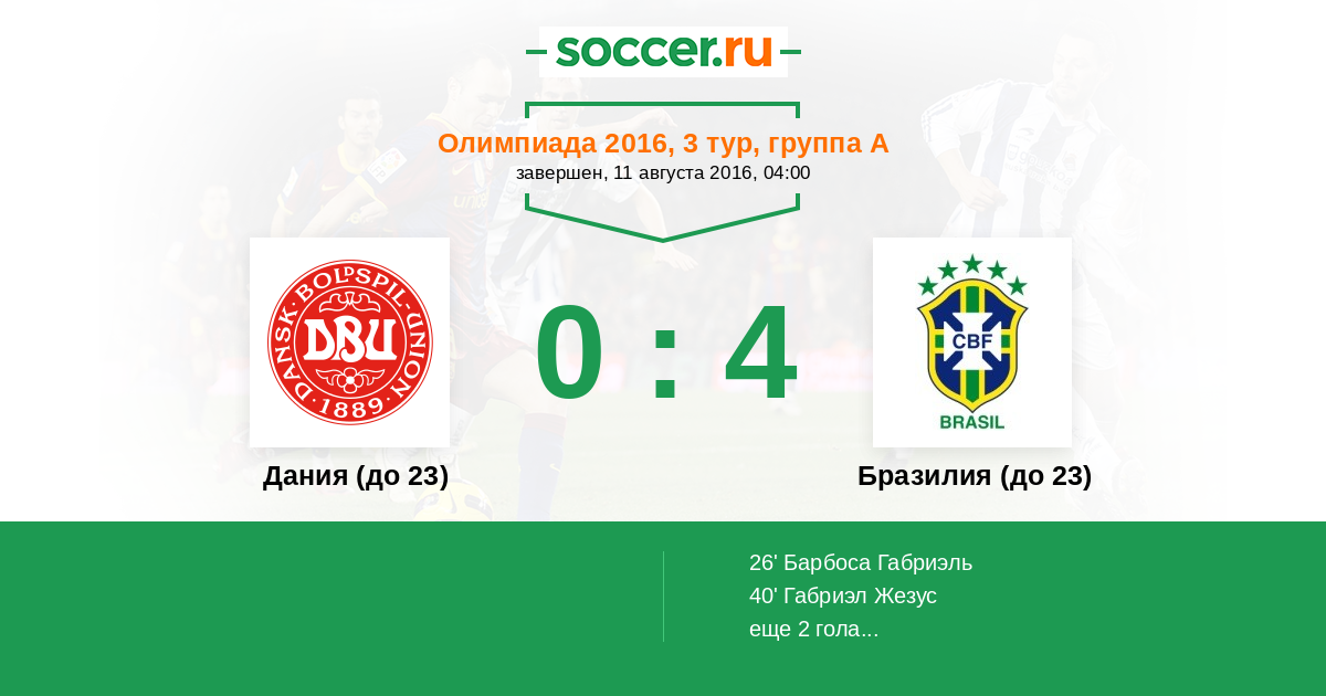 Протокол матча Дания (до 23) против Бразилия (до 23)