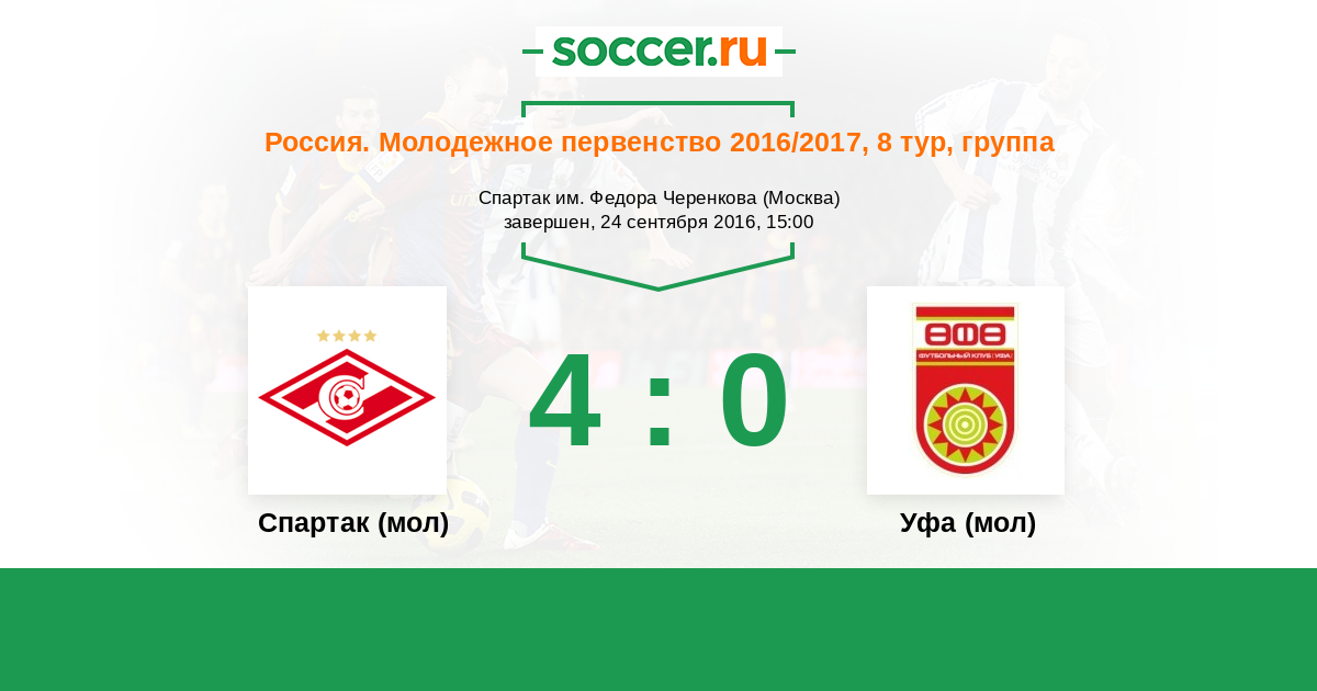 История матча Спартак (мол) против Уфа (мол)