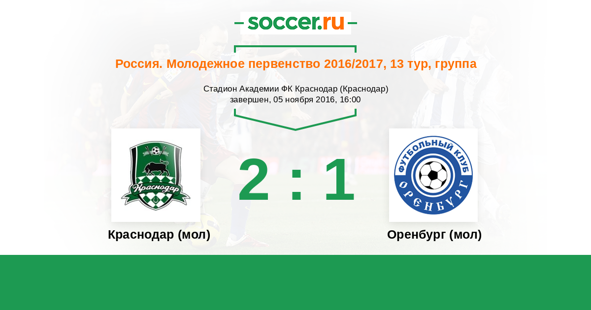 История матча Краснодар (мол) против Оренбург (мол)
