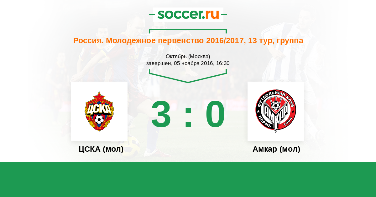 История матча ЦСКА (мол) против Амкар (мол)