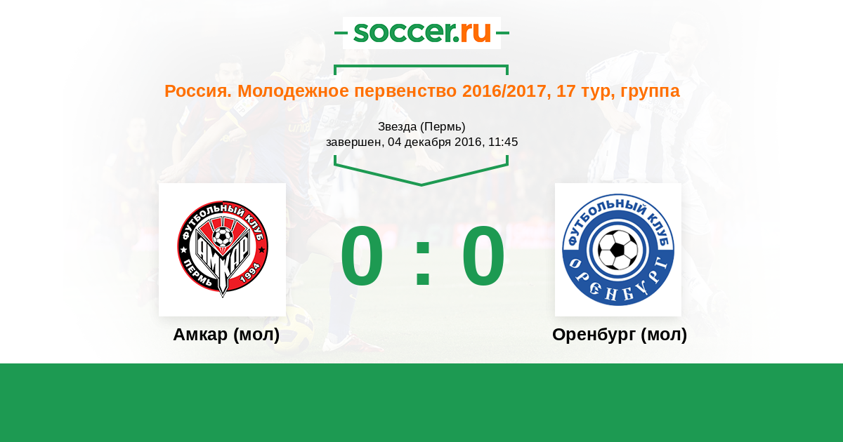 История матча Амкар (мол) против Оренбург (мол)