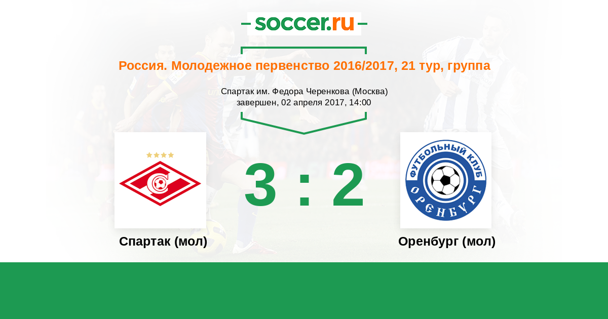 История матча Спартак (мол) против Оренбург (мол)