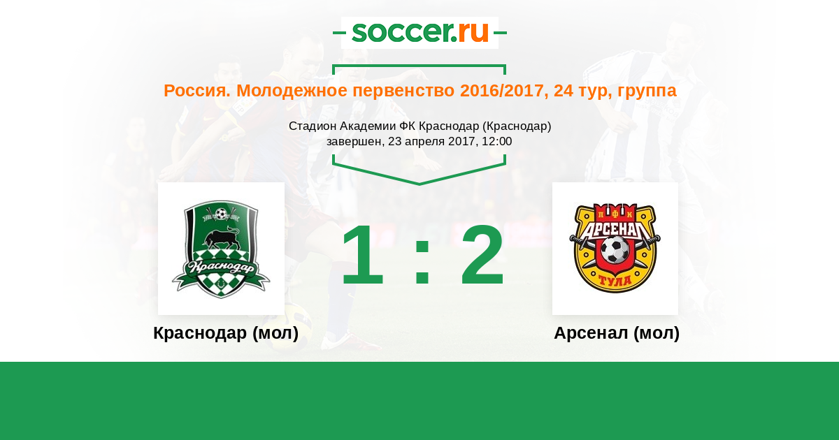 История матча Краснодар (мол) против Арсенал (мол)
