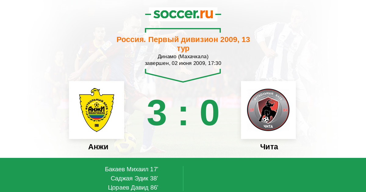 Протокол матча Анжи против Чита