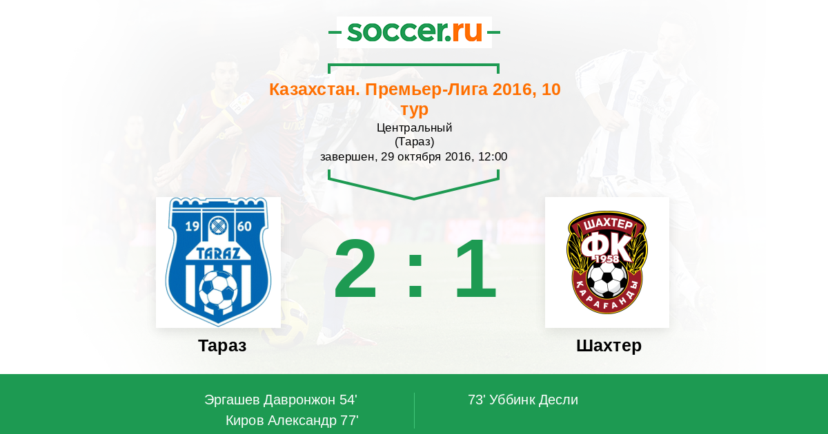 Протокол матча Тараз против Шахтер