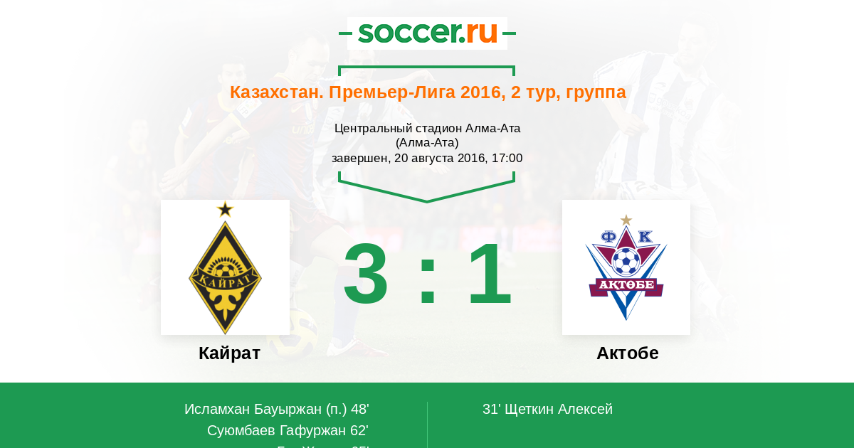 Протокол матча Кайрат против Актобе