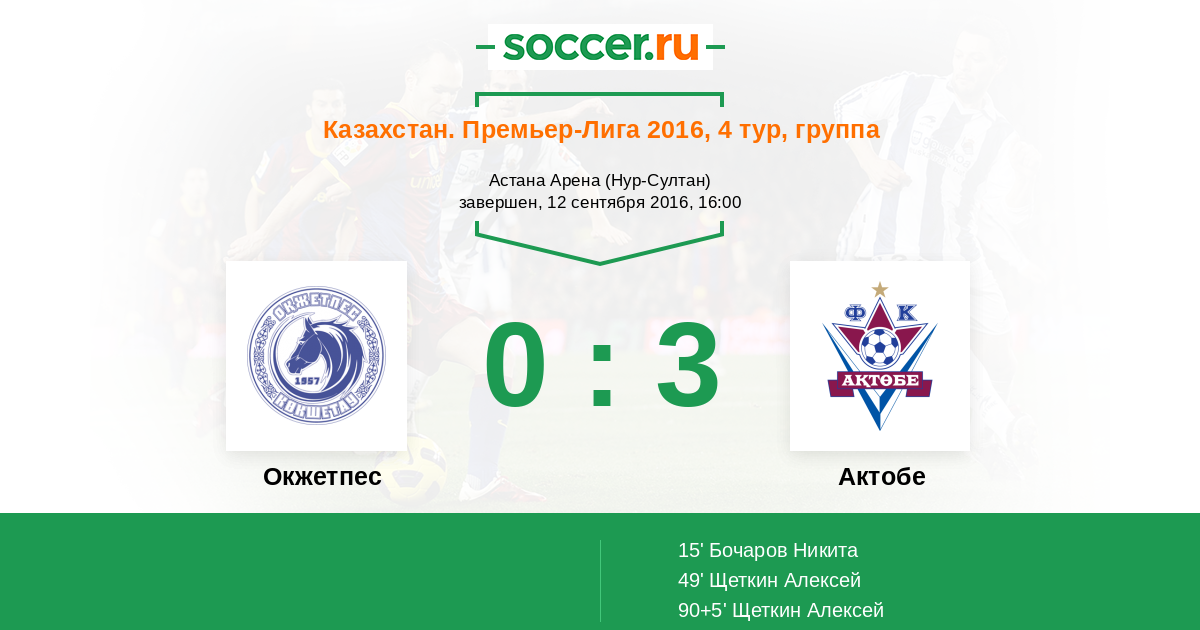 Протокол матча Окжетпес против Актобе