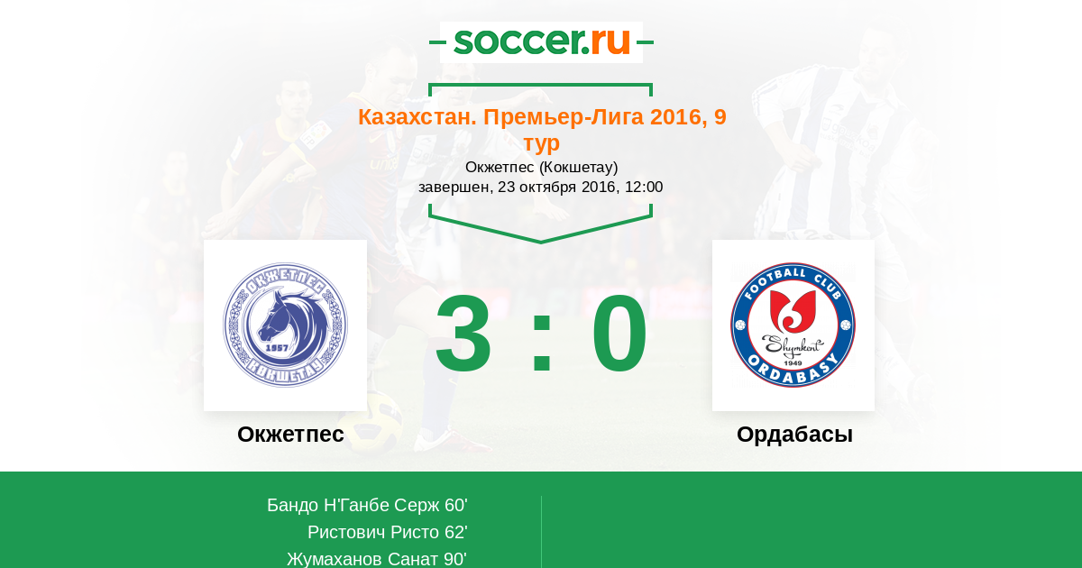 Протокол матча Окжетпес против Ордабасы