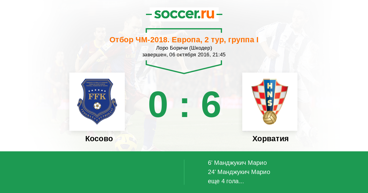 6' (0:1) Манджукич Марио (17) (Крамарич Андрей (9))