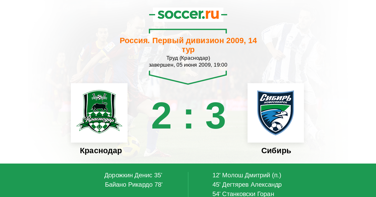 Протокол матча Краснодар против Сибирь